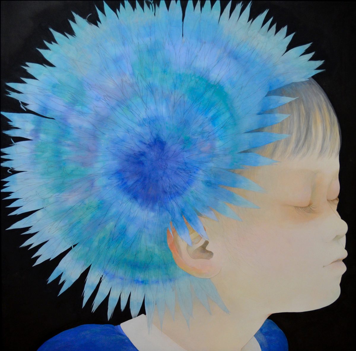 Dominant luminous light and lurking modest shadows are prevalent in Yajima Shiori’s works. Being inspired by the play of sunlight filtered through the trees, which impressed her in the woods of Mt. Yatsugatake, she embarked in her search of “light and shadow.” After a while, she also discovered, within herself, another search for “light and shadow.” In her new series of works entitled “Monster,” she renders figures of her child, who grows in an instant and whose brain develops explosively, in combination with elements in nature such as flowers, thorns, spiraling shells and so on. She says that the glow of nature, which she experienced in the woods of Mt. Yatsugatake, brought to life her inner landscape. She also says that her goal is “to produce work which is evocative of her own inner light comparable to that found in nature.” She will surely continue to find and show us new shades of light and shadow in the future.
